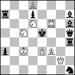 Let me finish this section by summarizing my feelings on the artistic elements in these seven twomovers. Würzburg's problem is more beautiful than Nanning's, although the later has the same thematic content with a much better economy. The reason is that the impact of Würzburg's key is stronger than that of Nanning's because the clearence is longer, and the position naturally embodies more variations which conceal the key. The purity of Bristols should be neglected in twomovers. Even with this modification of habits, a problem has to contain two or more Bristol phases. Since the Bristol setup is often obvious in a twomover (No.10 being an exception), there has to be some other element of beauty built in. For example, the two most obvious Bristols appear in No.8 by Kisis. The pathetically situated white queen is begging for a line clearence, but that obvious clue actually increases our appreciation of this proble m. There are two possible Bristols with a subtle difference, and that makes it a charming exercise for a solver. As much as possible, the forward piece in a Bristol should not be laterally confined. For pure Bristols, Nos. 4 and 6 illustrate one technique, No.9 another. For impure Bristols, the confinement of the front piece is easier to achieve by exploiting the impure actions. Nos. 7 and 10 and tries in No.9 are good examples. 4. THREEMOVERSBristol problems are clear proof that it is much easier to let your imagination fly when you have more time: although it is a two-move maneuver, it was implemented most successfully in threemovers and longer problems.